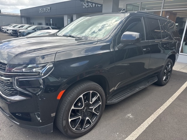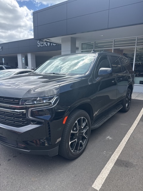 Black 2021 Chevrolet Tahoe RST 4WD 10-Speed Automatic with Overdrive EcoTec3 5.3L V8 4WD, Jet Black/Victory Red Leather, 10-Way Power Driver & Passenger Seat Adjusters, 1st & 2nd Row Color-Keyed Carpeted Floor Mats, 2 USB Data Ports, 3.23 Rear Axle Ratio, 3rd row seats: split-bench, 4-Wheel Disc Brakes, 9 Speakers, ABS brakes, Air Conditioning, Alloy wheels, AM/FM radio: SiriusXM with 360L, Apple CarPlay/Android Auto, Auto High-beam Headlights, Auto-Dimming Inside Rear-View Mirror, Auto-dimming Rear-View mirror, Automatic temperature control, Bose 9-Speaker Stereo Audio System Feature, Brake assist, Bright Front & Rear Door Sill Plates, Bumpers: body-color, Color-Keyed Carpeting Floor Covering, Compass, Delay-off headlights, Driver & Front Outboard Passenger Airbags, Driver door bin, Driver vanity mirror, Dual front impact airbags, Dual front side impact airbags, Electronic Stability Control, Emergency communication system: OnStar and Chevrolet connected services capable, Floor Console w/Storage Area, Four wheel independent suspension, Front anti-roll bar, Front Bucket Seats, Front Center Armrest, Front dual zone A/C, Front High-Back Reclining Bucket Seats, Front reading lights, Fully automatic headlights, Garage door transmitter, Hands-Free Rear Power Programmable Liftgate, HD Radio, Heated door mirrors, Heated Driver & Front Passenger Seats, Heated front seats, Illuminated entry, Infotainment Display, Leather steering wheel, Leather-Wrapped Steering Wheel, LED Daytime Running Lamps, License Plate Front Mounting Package, Low tire pressure warning, Memory seat, Memory Settings for Driver, Not Equipped w/Automatic Stop/Start, Not Equipped w/Steering Column Lock, Not Equipped w/Wireless Charging, Occupant sensing airbag, Outside temperature display, Overhead airbag, Overhead console, Panic alarm, Passenger door bin, Passenger vanity mirror, Perforated Leather Seat Trim, Power door mirrors, Power driver seat, Power Liftgate, Power passenger seat, Power steering, Power windows, Preferred Equipment Group 1SP, Premium audio system: Chevrolet Infotainment 3, Premium Smooth Ride Suspension, Radio: Chevrolet Infotainment 3 Plus System, Rain sensing wipers, Rear air conditioning, Rear anti-roll bar, Rear reading lights, Rear seat center armrest, Rear window defroster, Rear window wiper, Remote keyless entry, Remote Start, Roof rack: rails only, Security system, Set of 4 Wheel Locks (LPO), SiriusXM Radio w/360L, Speed control, Speed-sensing steering, Split folding rear seat, Spoiler, Steering wheel mounted audio controls, Tachometer, Telescoping steering wheel, Tilt steering wheel, Traction control, Trip computer, Universal Home Remote, Variably intermittent wipers, Voltmeter, Wheels: 22" x 9" Bright Machined, Backup Camera / Reverse Camera / Rear View Camera, 4WD, Jet Black/Victory Red Leather, 10-Way Power Driver & Passenger Seat Adjusters, 1st & 2nd Row Color-Keyed Carpeted Floor Mats, 2 USB Data Ports, 3.23 Rear Axle Ratio, 3rd row seats: split-bench, 4-Wheel Disc Brakes, 9 Speakers, ABS brakes, Air Conditioning, Alloy wheels, AM/FM radio: SiriusXM with 360L, Apple CarPlay/Android Auto, Auto High-beam Headlights, Auto-Dimming Inside Rear-View Mirror, Auto-dimming Rear-View mirror, Automatic temperature control, Bose 9-Speaker Stereo Audio System Feature, Brake assist, Bright Front & Rear Door Sill Plates, Bumpers: body-color, Color-Keyed Carpeting Floor Covering, Compass, Delay-off headlights, Driver & Front Outboard Passenger Airbags, Driver door bin, Driver vanity mirror, Dual front impact airbags, Dual front side impact airbags, Electronic Stability Control, Emergency communication system: OnStar and Chevrolet connected services capable, Floor Console w/Storage Area, Four wheel independent suspension, Front anti-roll bar, Front Bucket Seats, Front Center Armrest, Front dual zone A/C, Front High-Back Reclining Bucket Seats, Front reading lights, Fully automatic headlights, Garage door transmitter, Hands-Free Rear Power Programmable