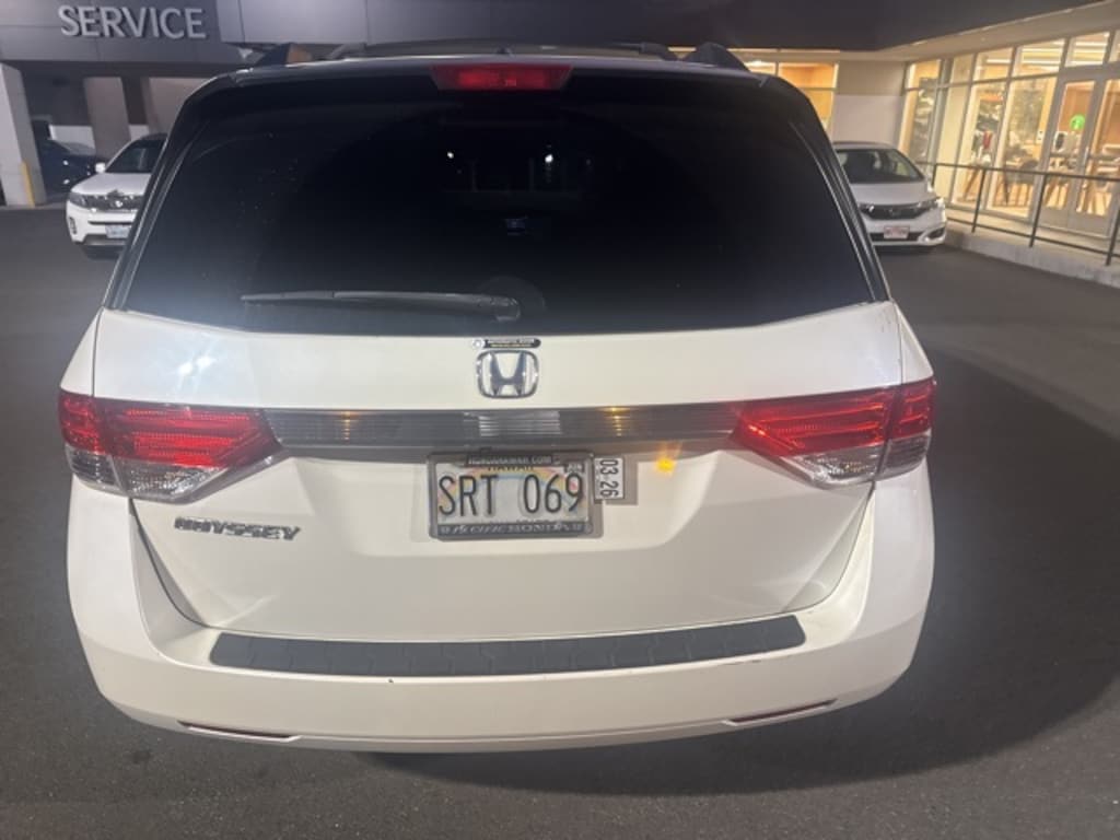 White 2015 Honda Odyssey EX-L FWD 6-Speed Automatic 3.5L V6 SOHC i-VTEC 24V 17" x 7" Alloy Wheels, 3rd row seats: split-bench, 4-Wheel Disc Brakes, 4.25 Axle Ratio, 7 Speakers, ABS brakes, Air Conditioning, Alloy wheels, AM/FM radio: SiriusXM, Anti-whiplash front head restraints, Auto-dimming Rear-View mirror, Automatic temperature control, Brake assist, Bumpers: body-color, CD player, Delay-off headlights, Driver door bin, Driver vanity mirror, Driver's Seat Mounted Armrest, Dual front impact airbags, Dual front side impact airbags, Electronic Stability Control, Exterior Parking Camera Rear, Four wheel independent suspension, Front anti-roll bar, Front Bucket Seats, Front dual zone A/C, Front reading lights, Fully automatic headlights, Garage door transmitter: HomeLink, Heated door mirrors, Heated Front Bucket Seats, Heated front seats, Illuminated entry, Leather Seat Trim, Leather Shift Knob, Leather steering wheel, Low tire pressure warning, Occupant sensing airbag, Outside temperature display, Overhead airbag, Overhead console, Panic alarm, Passenger door bin, Passenger seat mounted armrest, Passenger vanity mirror, Power door mirrors, Power driver seat, Power Liftgate, Power moonroof, Power passenger seat, Power steering, Power windows, Radio data system, Rear air conditioning, Rear reading lights, Rear seat center armrest, Rear window defroster, Rear window wiper, Reclining 3rd row seat, Remote keyless entry, Security system, Speed control, Speed-sensing steering, Speed-Sensitive Wipers, Split folding rear seat, Spoiler, Steering wheel mounted audio controls, Tachometer, Telescoping steering wheel, Tilt steering wheel, Traction control, Trip computer, Variably intermittent wipers, 17" x 7" Alloy Wheels, 3rd row seats: split-bench, 4-Wheel Disc Brakes, 4.25 Axle Ratio, 7 Speakers, ABS brakes, Air Conditioning, Alloy wheels, AM/FM radio: SiriusXM, Anti-whiplash front head restraints, Auto-dimming Rear-View mirror, Automatic temperature control, Brake assist, Bumpers: body-color, CD player, Delay-off headlights, Driver door bin, Driver vanity mirror, Driver's Seat Mounted Armrest, Dual front impact airbags, Dual front side impact airbags, Electronic Stability Control, Exterior Parking Camera Rear, Four wheel independent suspension, Front anti-roll bar, Front Bucket Seats, Front dual zone A/C, Front reading lights, Fully automatic headlights, Garage door transmitter: HomeLink, Heated door mirrors, Heated Front Bucket Seats, Heated front seats, Illuminated entry, Leather Seat Trim, Leather Shift Knob, Leather steering wheel, Low tire pressure warning, Occupant sensing airbag, Outside temperature display, Overhead airbag, Overhead console, Panic alarm, Passenger door bin, Passenger seat mounted armrest, Passenger vanity mirror, Power door mirrors, Power driver seat, Power Liftgate, Power moonroof, Power passenger seat, Power steering, Power windows, Radio data system, Rear air conditioning, Rear reading lights, Rear seat center armrest, Rear window defroster, Rear window wiper, Reclining 3rd row seat, Remote keyless entry, Security system, Speed control, Speed-sensing steering, Speed-Sensitive Wipers, Split folding rear seat, Spoiler, Steering wheel mounted audio controls, Tachometer, Telescoping steering wheel, Tilt steering wheel, Traction control, Trip computer, Variably intermittent wipers.