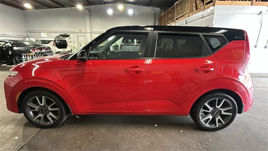 Inferno Red/Black Roof 2020 Kia Soul GT-Line FWD CVT 2.0L I4 MPI DOHC 16V LEV3-SULEV30 147hp 4-Wheel Disc Brakes, 6 Speakers, 6-Way Adjustable Driver's Seat, ABS brakes, Air Conditioning, Alloy wheels, AM/FM radio, Apple CarPlay & Android Auto, Brake assist, Bumpers: body-color, Cargo Net, Carpeted Floor Mats, Delay-off headlights, Driver door bin, Driver vanity mirror, Dual front impact airbags, Dual front side impact airbags, Electronic Stability Control, Exterior Parking Camera Rear, Front anti-roll bar, Front Bucket Seats, Front Center Armrest, Front fog lights, Front reading lights, Front wheel independent suspension, Fully automatic headlights, Leather Shift Knob, Leather steering wheel, Low tire pressure warning, Occupant sensing airbag, Outside temperature display, Overhead airbag, Overhead console, Passenger door bin, Passenger vanity mirror, Power door mirrors, Power steering, Power windows, Radio: AM/FM/MP3 Audio System, Rear Bumper Applique Turbo, Rear window defroster, Rear window wiper, Remote keyless entry, Speed control, Speed-sensing steering, Split folding rear seat, Sport steering wheel, Steering wheel mounted audio controls, Tachometer, Telescoping steering wheel, Tilt steering wheel, Traction control, Tricot Premium Cloth Seat Trim, Trip computer, Variably intermittent wipers, Wheels: 18" x 7.5 Alloy.