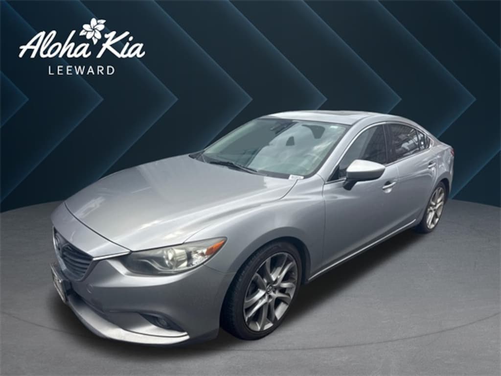 Silver 2014 Mazda Mazda6 i Grand Touring FWD 6-Speed Sport Automatic SKYACTIV®-G 2.5L I4 DOHC 16V 11 Speakers, 3 Level Heated Reclining Front Sport Bucket Seats, 4-Wheel Disc Brakes, ABS brakes, Air Conditioning, Alloy wheels, AM/FM radio: SiriusXM, Anti-whiplash front head restraints, Auto-dimming door mirrors, Auto-dimming Rear-View mirror, Automatic temperature control, Brake assist, Bumpers: body-color, CD player, Compass, Delay-off headlights, Driver door bin, Driver vanity mirror, Dual front impact airbags, Dual front side impact airbags, Electronic Stability Control, Exterior Parking Camera Rear, Four wheel independent suspension, Front anti-roll bar, Front Bucket Seats, Front Center Armrest, Front dual zone A/C, Front fog lights, Front reading lights, Fully automatic headlights, Garage door transmitter: HomeLink, Heated door mirrors, Heated front seats, High intensity discharge headlights: Bi-Xenon, Illuminated entry, Leather Seat Trim, Leather Shift Knob, Low tire pressure warning, Memory seat, Navigation System, Occupant sensing airbag, Outside temperature display, Overhead airbag, Overhead console, Panic alarm, Passenger door bin, Passenger vanity mirror, Power door mirrors, Power driver seat, Power moonroof, Power passenger seat, Power steering, Power windows, Radio data system, Radio: AM/FM/CD/MP3/AUX BOSE 11-Speaker & HD Radio, Rain sensing wipers, Rear anti-roll bar, Rear reading lights, Rear seat center armrest, Rear window defroster, Remote keyless entry, Security system, Speed control, Speed-sensing steering, Split folding rear seat, Spoiler, Steering wheel mounted audio controls, Tachometer, Telescoping steering wheel, Tilt steering wheel, Traction control, Trip computer, Turn signal indicator mirrors, Variably intermittent wipers, Wheels: 19" x 7.5J Alloy w/Platinum Silver Finish.