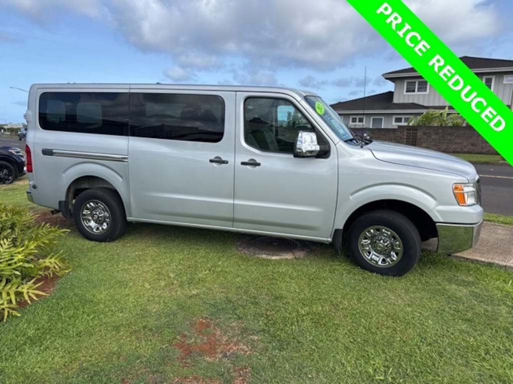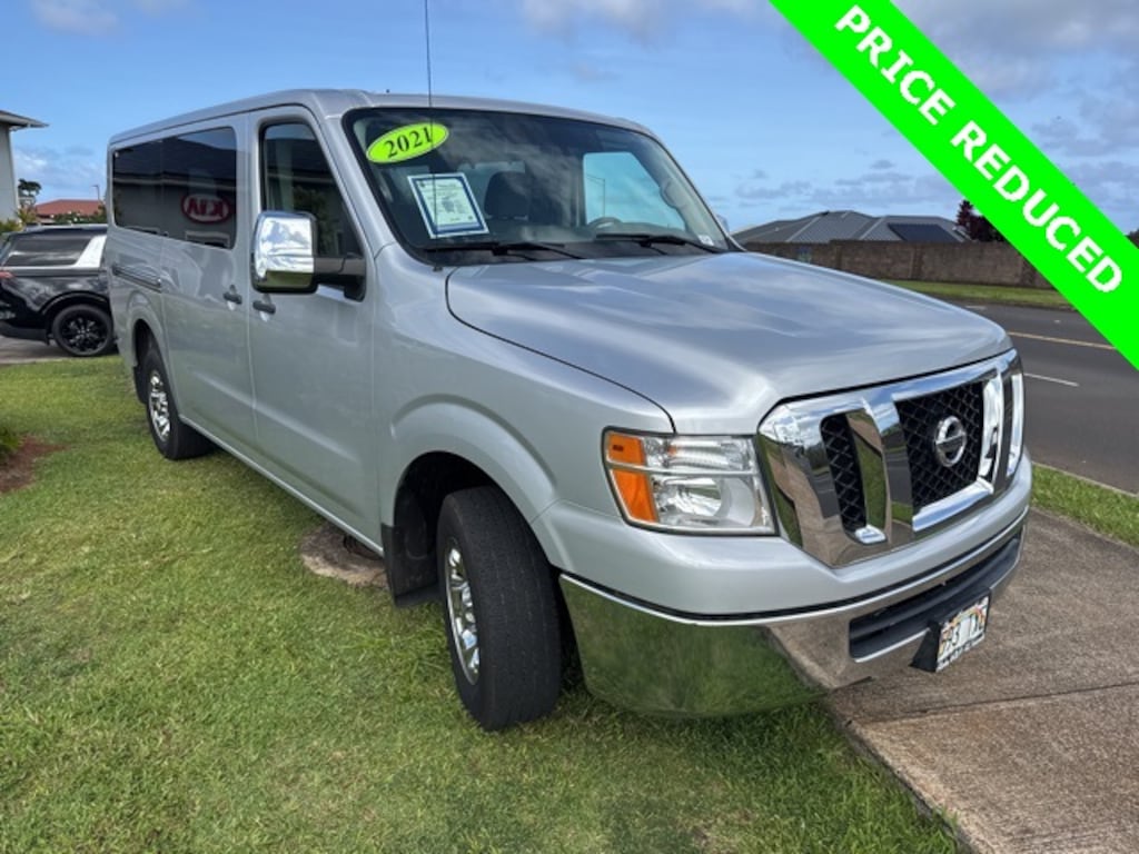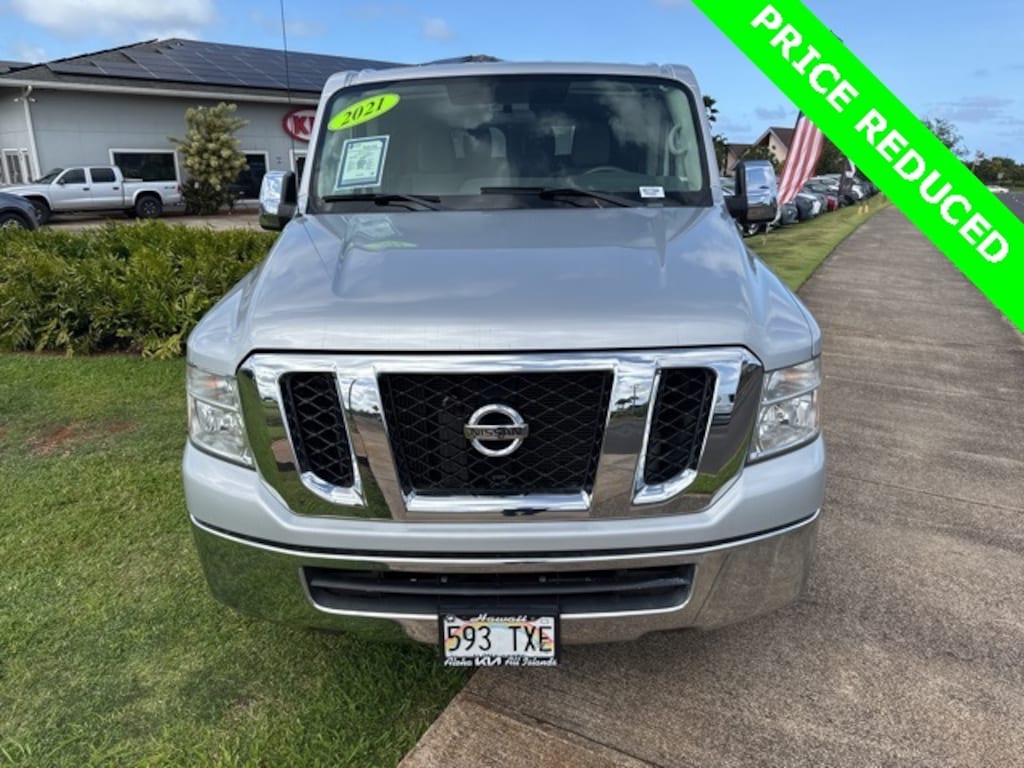 Brilliant Silver Metallic 2021 Nissan NV Passenger SV RWD 5-Speed Automatic 3.36 Axle Ratio, 3rd row seats: split-bench, 4-Wheel Disc Brakes, 4th-Row Bench Seat, 6 Speakers, ABS brakes, Air Conditioning, AM/FM radio: SiriusXM, Brake assist, Bumpers: chrome, Carpeted Floor Mats, Driver door bin, Dual front impact airbags, Dual front side impact airbags, Electronic Stability Control, Exterior Parking Camera Rear, Front anti-roll bar, Front Bucket Seats, Front Center Armrest w/Storage, Front reading lights, Front wheel independent suspension, Low tire pressure warning, Navigation System, Outside temperature display, Overhead airbag, Overhead console, Panic alarm, Passenger door bin, Power door mirrors, Power driver seat, Power steering, Power windows, Premium Cloth Seat Trim, Radio data system, Radio: NissanConnect w/Navigation & Mobile Apps, Rear air conditioning, Rear anti-roll bar, Rear Carpet Floor Mats, Rear Parking Sensors, Rear reading lights, Rear window defroster, Remote keyless entry, Security system, Speed control, Speed-sensing steering, Speed-Sensitive Wipers, Splash Guards (Set of 4), Steering wheel mounted audio controls, Tachometer, Tilt steering wheel, Traction control, Trip computer, Variably intermittent wipers, Voltmeter, Wheels: 7.5J x 17" Chrome-Clad Styled Steel. 4.0L V6 DOHC 24V