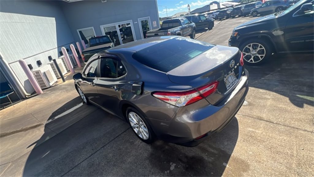 Gray 2018 Toyota Camry L FWD 8-Speed Automatic 4-Wheel Disc Brakes, 6 Speakers, 6.5J x 16" Steel Wheels, ABS brakes, Air Conditioning, AM/FM radio, Auto High-beam Headlights, Brake assist, Bumpers: body-color, Delay-off headlights, Driver door bin, Driver vanity mirror, Dual front impact airbags, Dual front side impact airbags, Electronic Stability Control, Exterior Parking Camera Rear, Fabric Seat Trim, Four wheel independent suspension, Front anti-roll bar, Front Bucket Seats, Front Center Armrest, Front reading lights, Fully automatic headlights, Illuminated entry, Knee airbag, Low tire pressure warning, Occupant sensing airbag, Outside temperature display, Overhead airbag, Overhead console, Panic alarm, Passenger door bin, Passenger vanity mirror, Power door mirrors, Power steering, Power windows, Radio data system, Radio: Entune 3.0 Audio, Rear anti-roll bar, Rear reading lights, Rear side impact airbag, Rear window defroster, Remote keyless entry, Speed control, Speed-sensing steering, Steering wheel mounted audio controls, Tachometer, Telescoping steering wheel, Tilt steering wheel, Traction control, Trip computer, Variably intermittent wipers. 2.5L I4 DOHC 16V